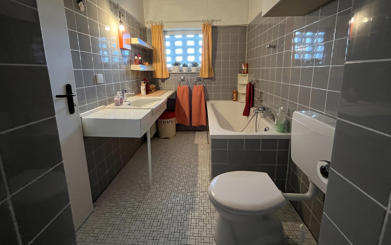 Die beiden Objekte der Eigentümergemeinschaft besitzen eine gemeinsame Tiefgarage sowie im Nachbarhaus ein gepflegtes Schwimmbad mit Sauna. Durch die hohe Anzahl der Eigentümer (72 Einheiten) teilen sich die Kosten angenehm auf und belasten den einzelnen selbst beim Betrieb des Schwimmbades wenig.