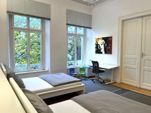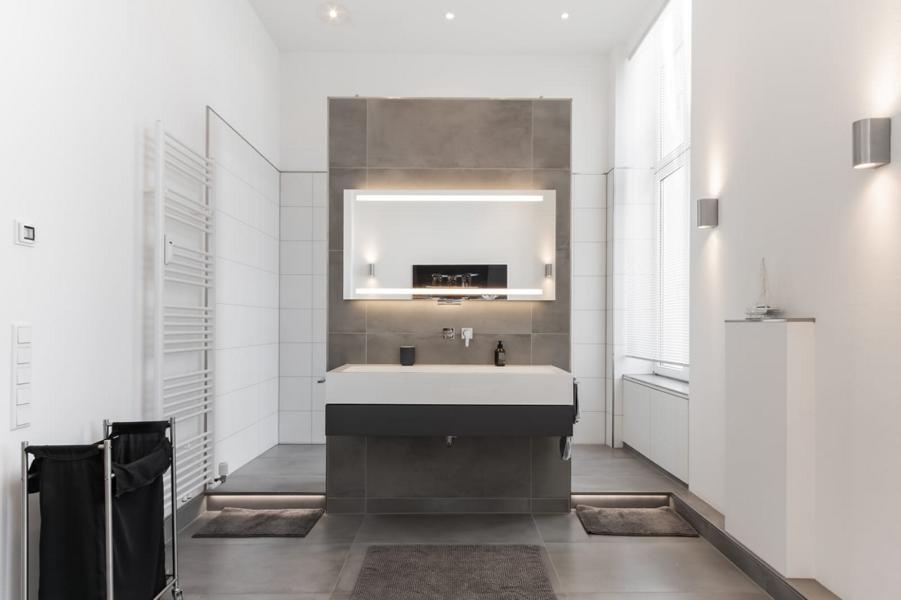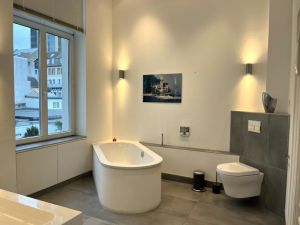 Die Bäder entsprechen ebenfalls den heutigen Vorstellungen und sind mit gutem Stilgefühl luxuriös ausgestattet worden.