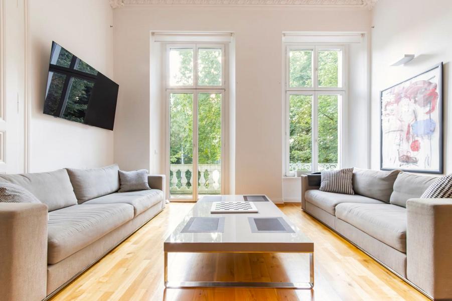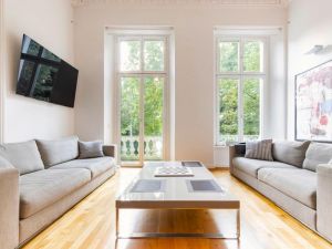 Die klassische Raumflucht Wohnraum - Esszimmer - "Salon" ist jedoch so beliebt wie zu früheren Zeiten und bietet Ihnen in diesen drei ineinander übergehenden Räumen einen wunderbaren Blick auf den gegenüberliegende Kaiserteich.