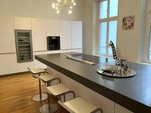 War die Küche in früheren Zeiten dem Personal vorbehalten gilt sie heute als Dreh- und Angelpunkt des privaten Lebens: hier wurde einer der großzügigen Räume umgenutzt um Ihnen genug Raum zu bieten für Treffen mit Freunden oder Kochabende im privaten Kreis.